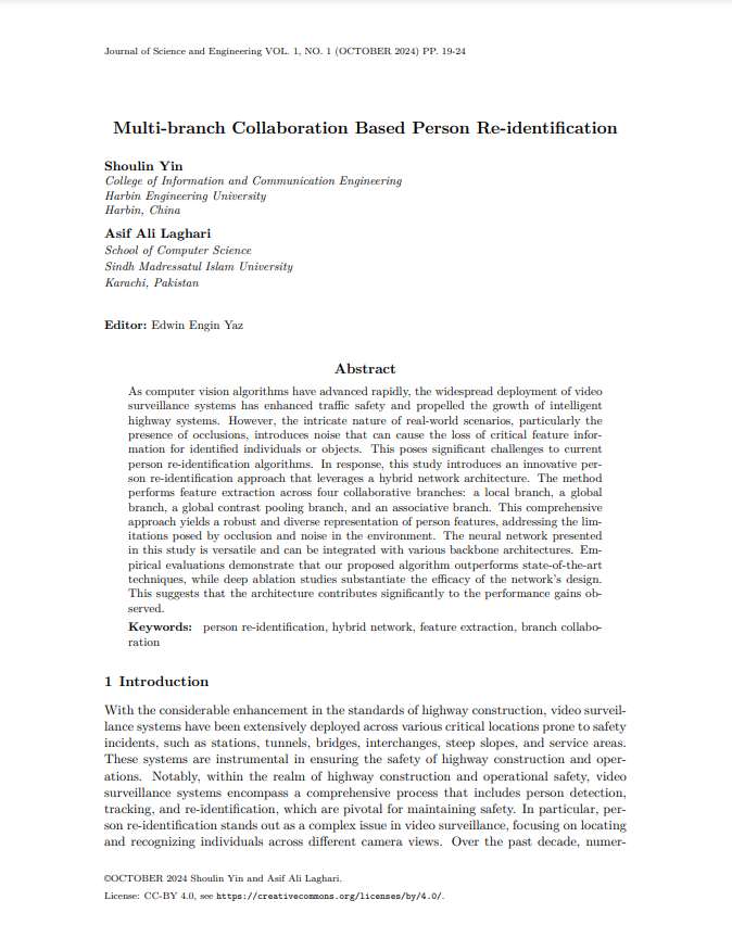 As computer vision algorithms have advanced rapidly, the widespread deployment of video surveillance systems has enhanced traffic safety and propelled the growth of intelligent highway systems. However, the intricate nature of real-world scenarios, particularly the presence of occlusions, introduces noise that can cause the loss of critical feature information for identified individuals or objects. This poses significant challenges to current person re-identification algorithms. In response, this study introduces an innovative person re-identification approach that leverages a hybrid network architecture. The method performs feature extraction across four collaborative branches: a local branch, a global branch, a global contrast pooling branch, and an associative branch. This comprehensive approach yields a robust and diverse representation of person features, addressing the limitations posed by occlusion and noise in the environment. The neural network presented in this study is versatile and can be integrated with various backbone architectures. Empirical evaluations demonstrate that our proposed algorithm outperforms state-of-the-art techniques, while deep ablation studies substantiate the efficacy of the network’s design. This suggests that the architecture contributes significantly to the performance gains observed.